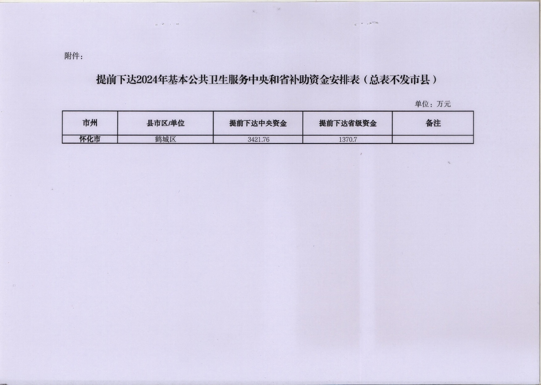 湖南省财政厅关于提前下达2024年基本公共卫生服务中央和省级财政补助资金的通知