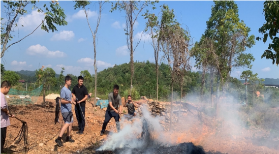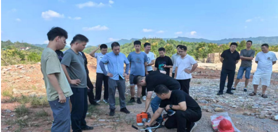 演练现场设置火点,要求队员在真实炎热环境中完成火情研判、装备操作、协同扑救等行动。新队员在老队员指导下,实际操控车载高压水枪、割灌机、风力灭火机。
