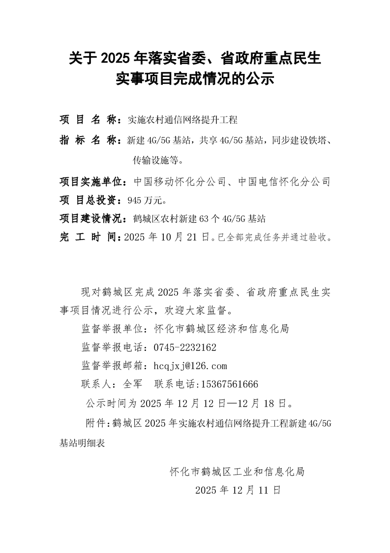 关于2025年落实省委、省政府重点民生实事项目完成情况的公示
