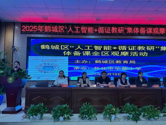 2025年10月15日,鹤城区“人工智能+循证教研”集体备课全区观摩活动在华都小学三楼大会议室顺利举行。本次活动由鹤城区教育局电化教育部联合教育教学研究部主办,华都小学承办,全区教研室主任及学科教师代表参加观摩研讨,共同探索人工智能与循证教研深度融合的新路径,活动以现场研讨、课例直播、数据复盘等形式,为区域教研创新注入新活力。
