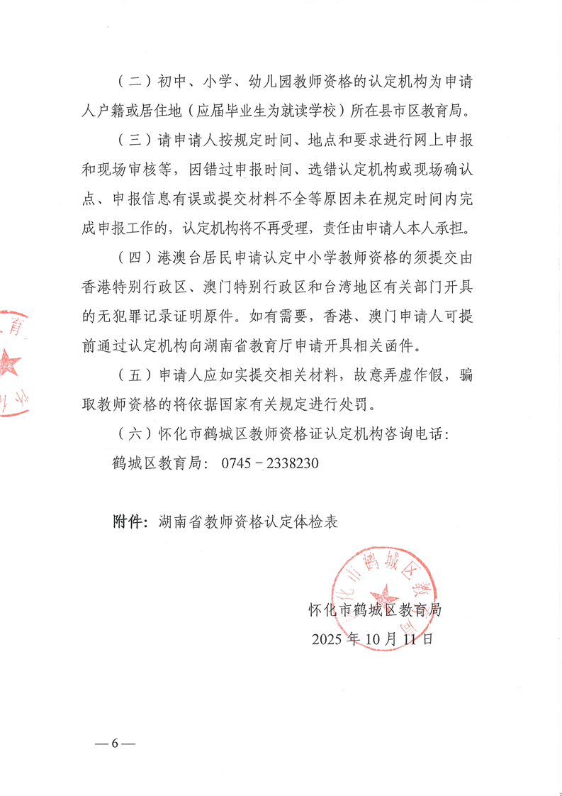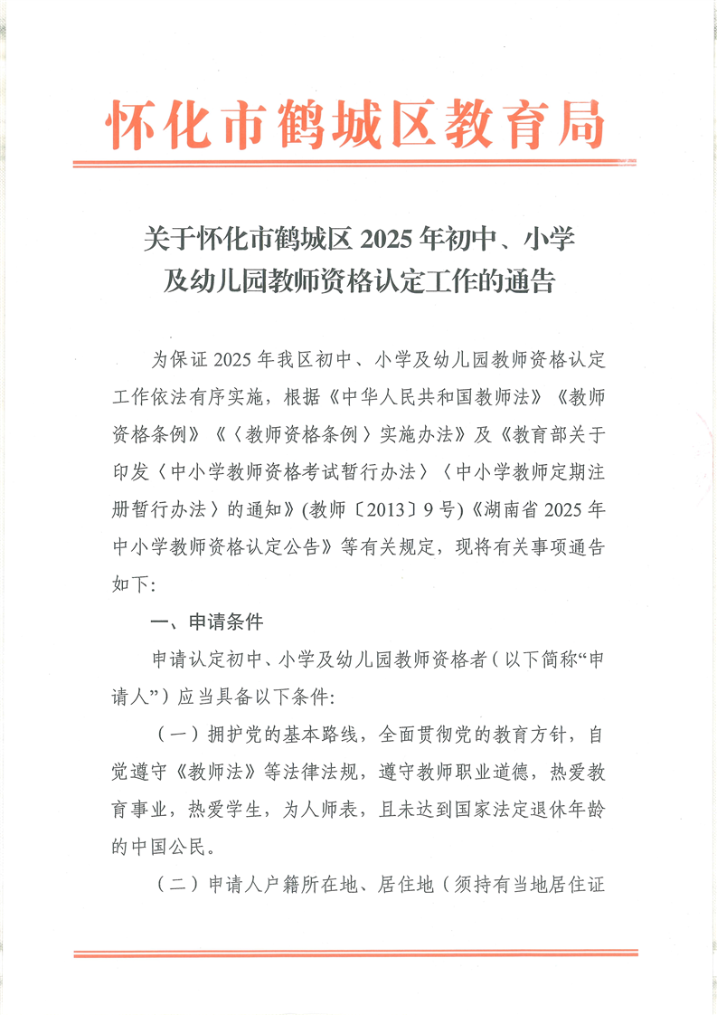 关于怀化市鹤城区2025年初中、小学及幼儿园教师资格认定工作的通告