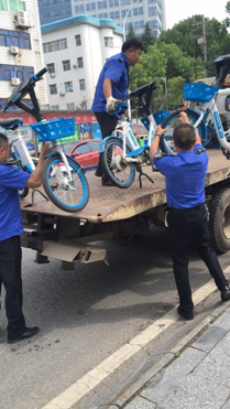 鹤城区综合执法局城北执法大队依法取缔违停共享单车