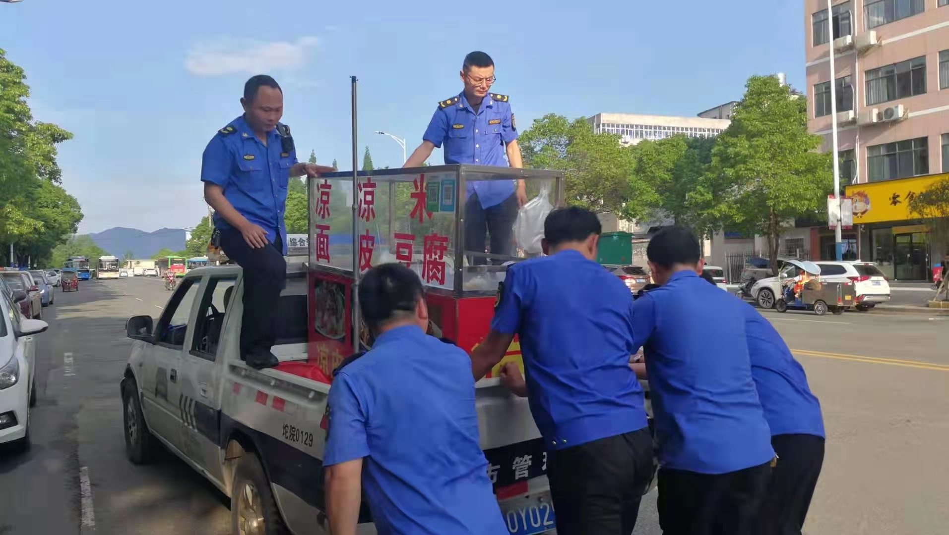 此次行动联合车管中队,共计出动30余执法队员,执法车辆5辆,拖车3辆,重点对两校区周边影响市容环境卫生及道路交通安全的摊贩进行了车辆和物品的暂扣,暂扣三轮车15台,推车5辆。(彭盛)