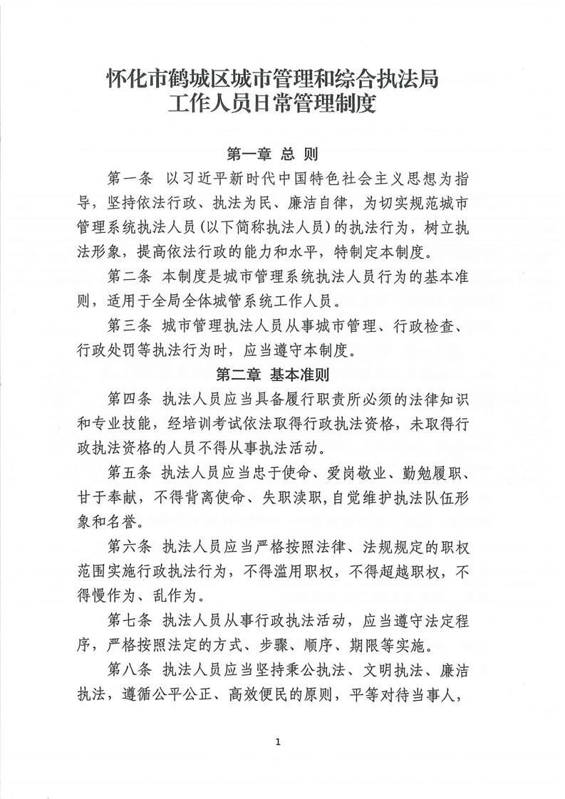 怀化市鹤城区城市管理和综合执法局工作人员日常管理制度