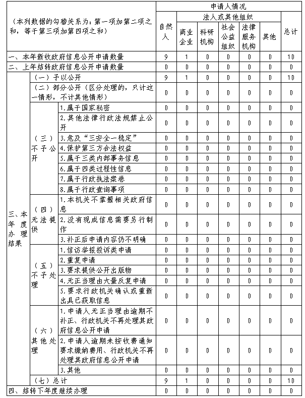 三、收到和处理政府信息公开申请情况