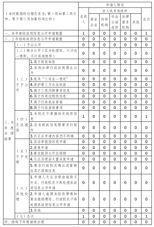 三、收到和处理政府信息公开申请情况