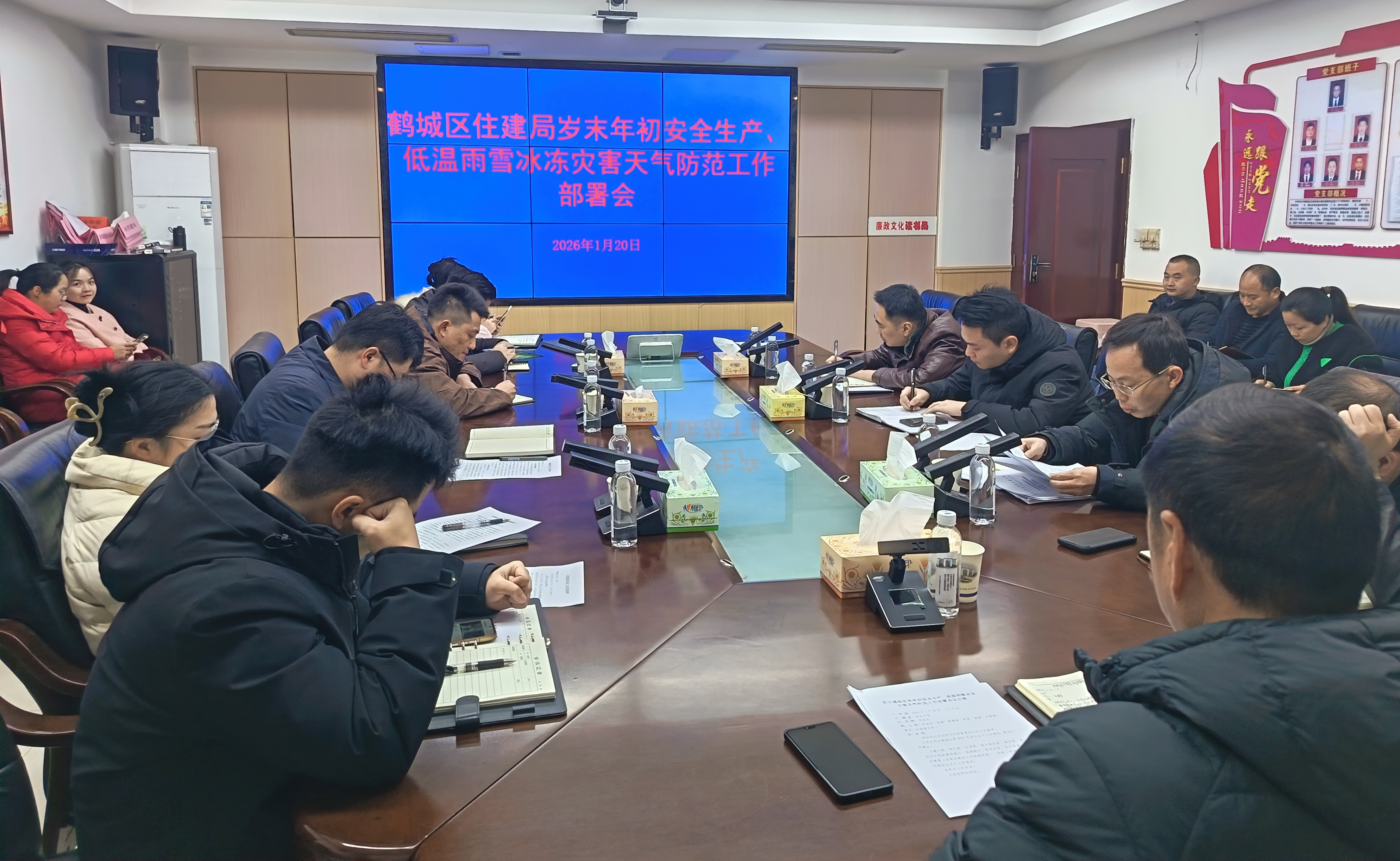 第一时间召开低温雨雪冰冻天气防范应对工作部署会,传达气象预警信息和上级工作要求,迅速启动应急响应机制,明确各股(站)室责任。通过微信工作群、电话通知、现场交底等方式,将预警信息和防范要求传达至全区各在建项目、施工班组、作业岗位,实现预警通知全覆盖,督促各项目迅速进入临战状态,合理调整施工计划,做到早部署、早准备、早防范。
