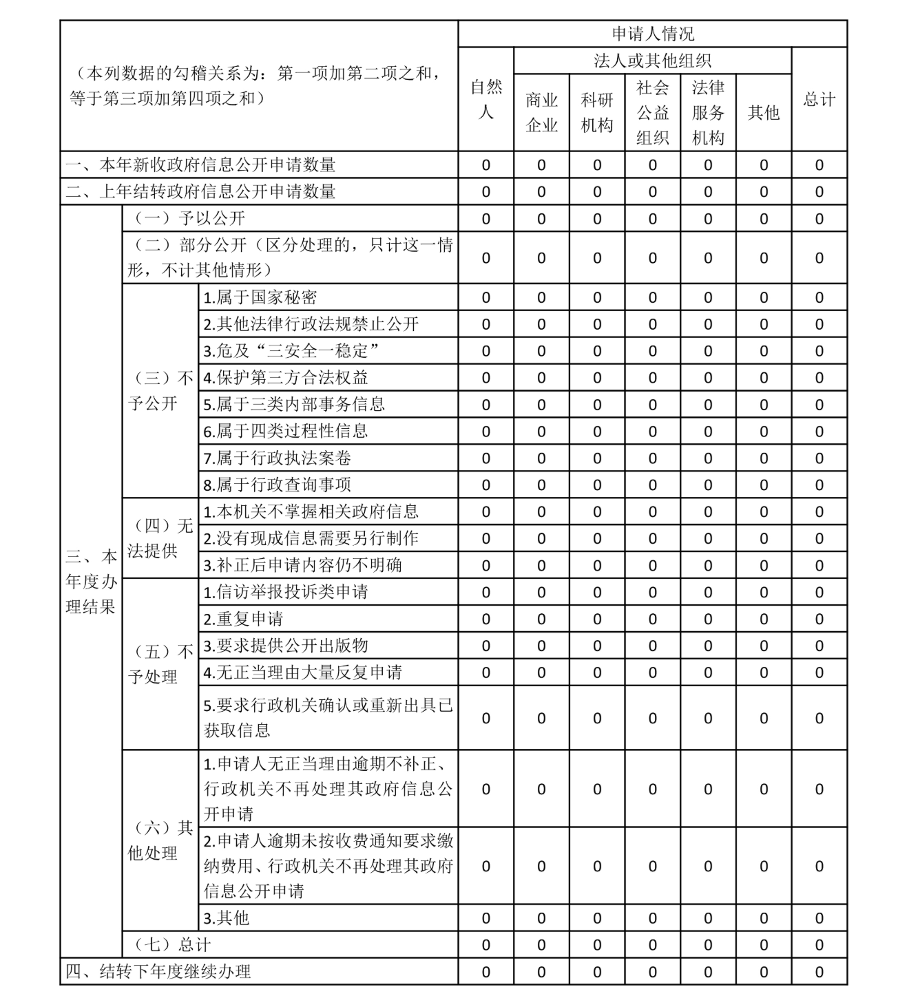 三、收到和处理政府信息公开申请情况