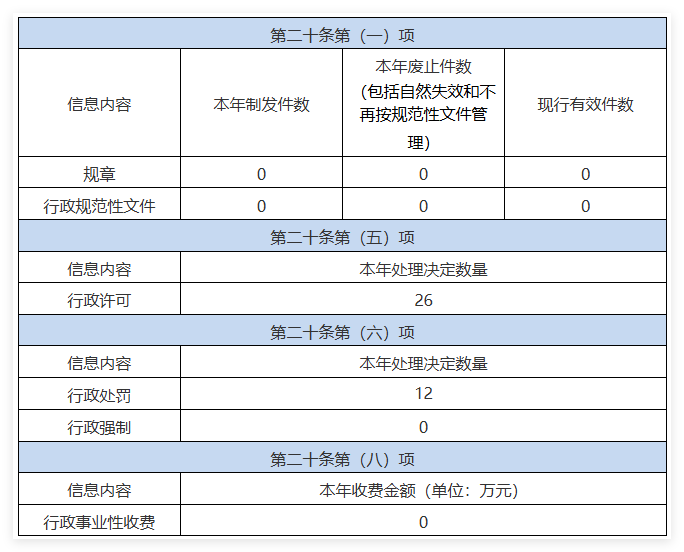 本年度报告根据《中华人民共和国政府信息公开条例》(以下简称《条例》)、湖南省政务公开领导小组办公室《关于贯彻落实(中华人民共和国政府信息公开条例)实施方案》(以下简称《实施方案》)及《怀化市政府信息公开实施细则》(以下简称《细则》)的有关规定,由鹤城区应急局政务公开领导小组办公室编制。全文由总体情况、主动公开政府信息情况、收到和处理政府信息公开申请情况、政府信息公开行政复议行政诉讼情况、存在的主要问题及改进情况及其他需要报告的事项等六部分组成。本报告的统计数据时限为2025年1月1日至12月31日,通过怀化市鹤城区人民政府门户网站对外公布。如对报告有任何疑问、意见,请与怀化市鹤城区应急管理局办公室联系(地址:怀化市鹤城区应急中心四楼417室,邮编:418000,电话:0745-2244122)。