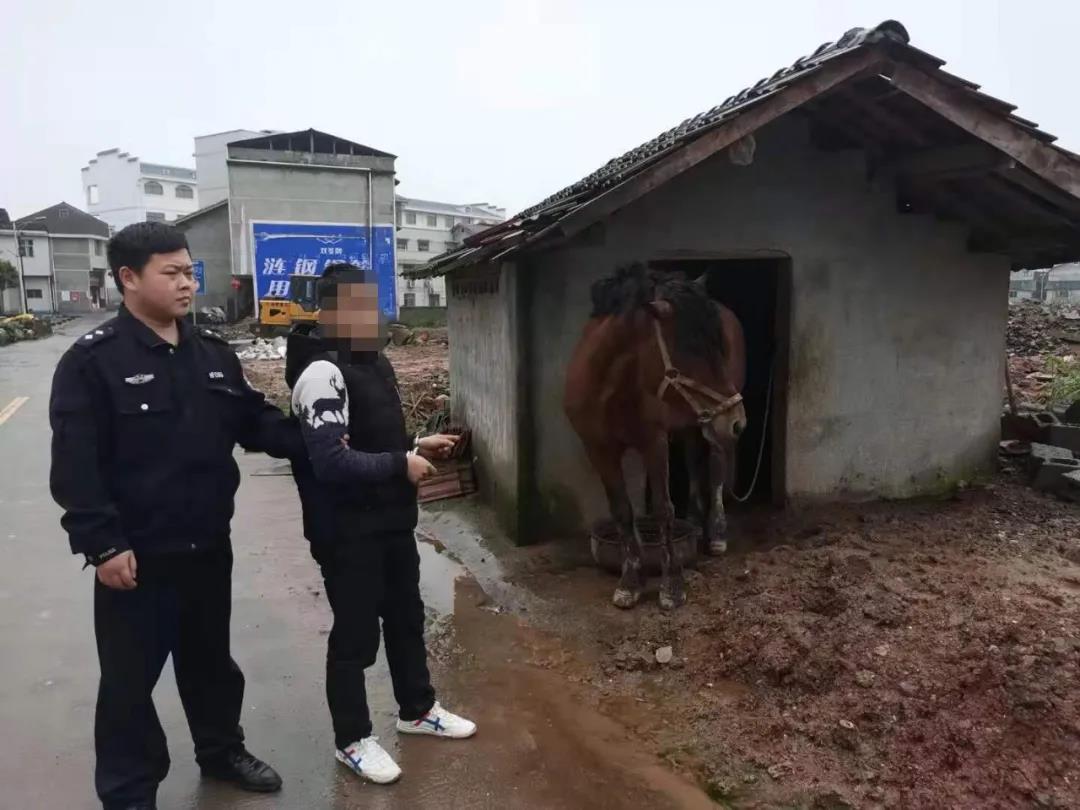 今年3月下旬,家住黄金坳镇尽远村的老陈急匆匆地来到黄金坳派出所报警,原来他拴在镇卫生院门口的一匹枣红色公马不见了。农村家中的牛、马被盗可是一笔不小的损失,民警们一边安慰老陈,一边开展调查工作。通过连日来的走访摸排,本地村民王某(化名)进入了警方视线。于是民警们将调查工作的重点放在了王某及其妻子梁某(化名)身上。由于黄金坳属于农村,周边的路况、人员和环境都非常复杂,给案件的侦破带来了不小的难度。但民警们为了早日为群众追回被盗马匹,一直坚持不懈的开展工作。终于,在4月13日,将涉嫌盗窃牲畜的嫌疑人王某及其妻子梁某抓获。