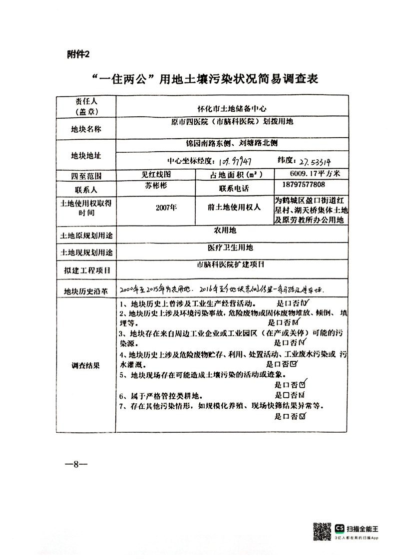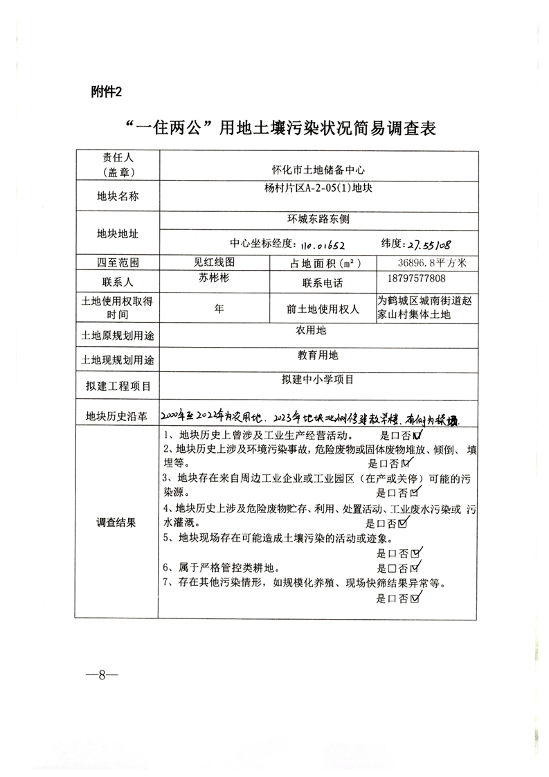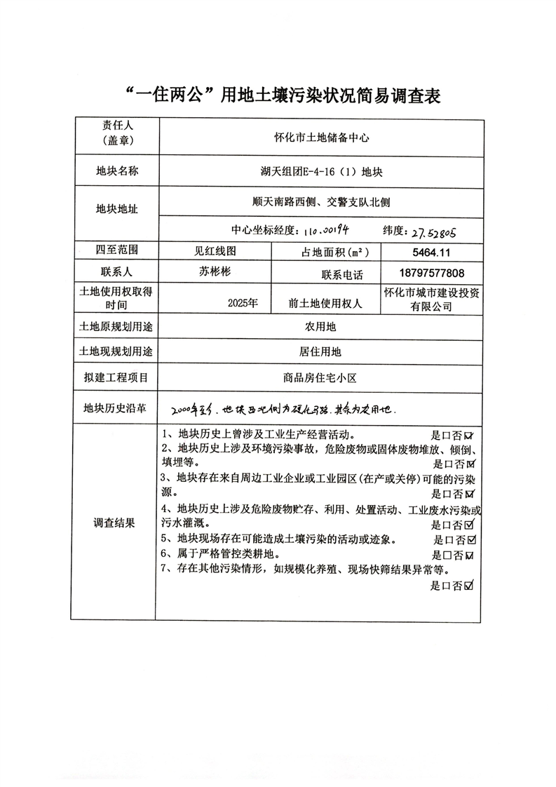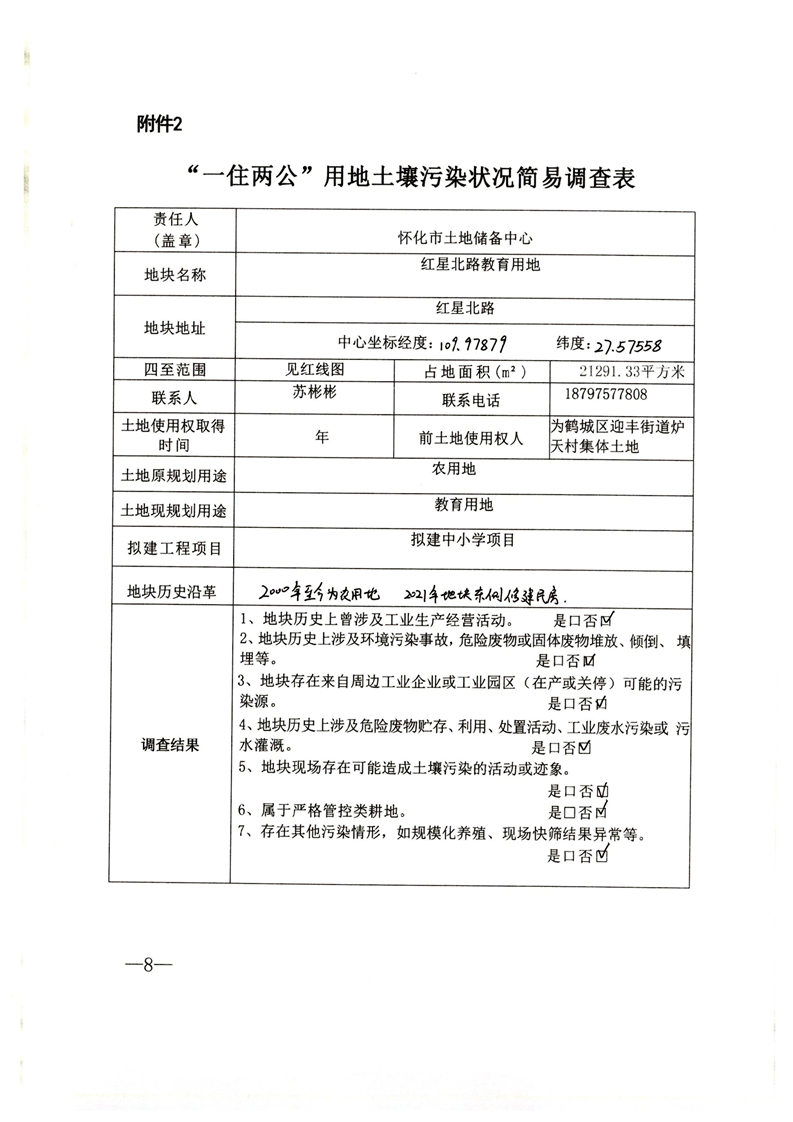 “一住两公”用地土壤污染状况简易调查表