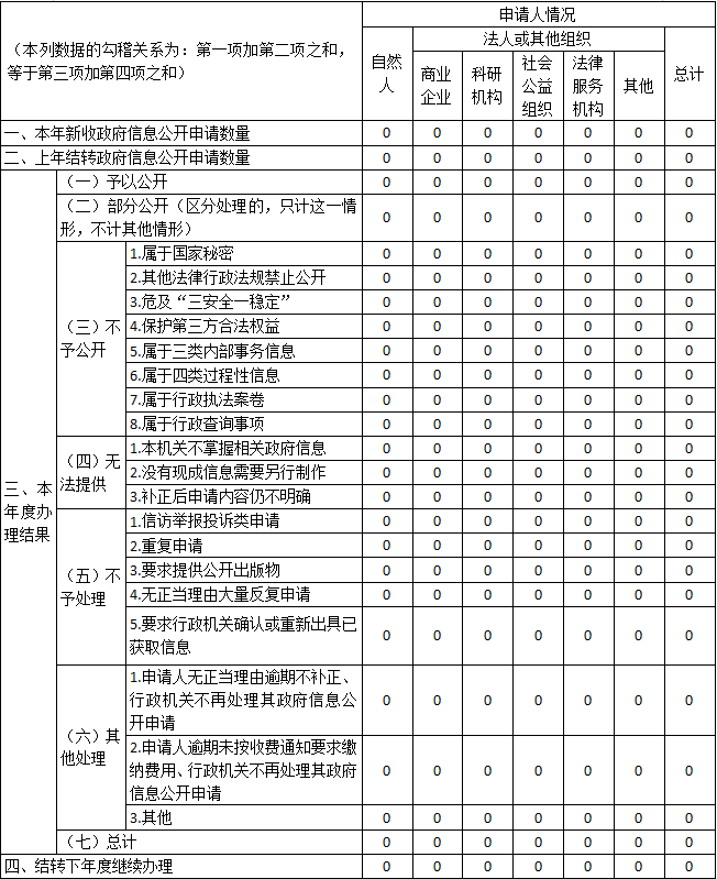 三、收到和处理政府信息公开申请情况