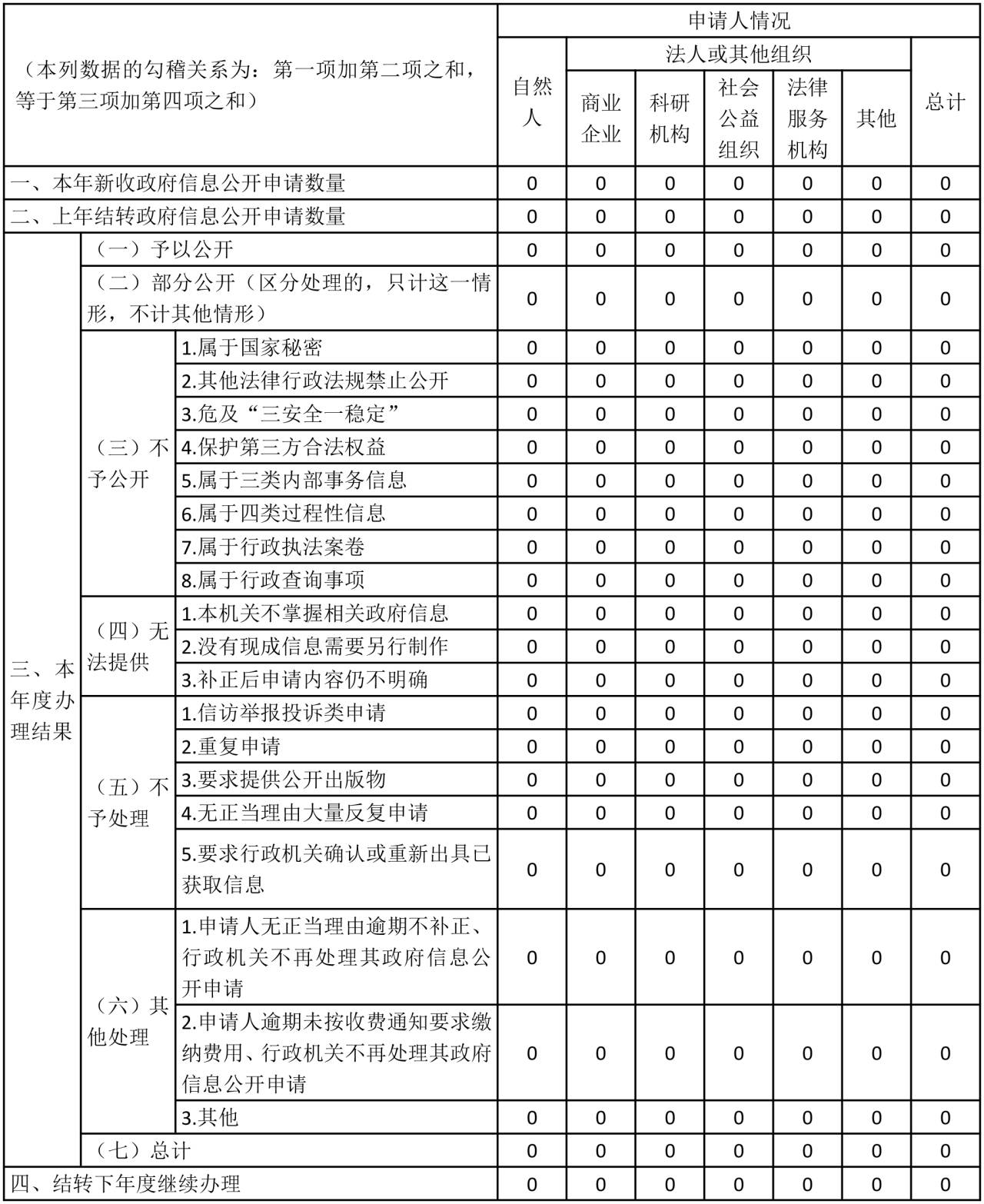 三、收到和处理政府信息公开申请情况
