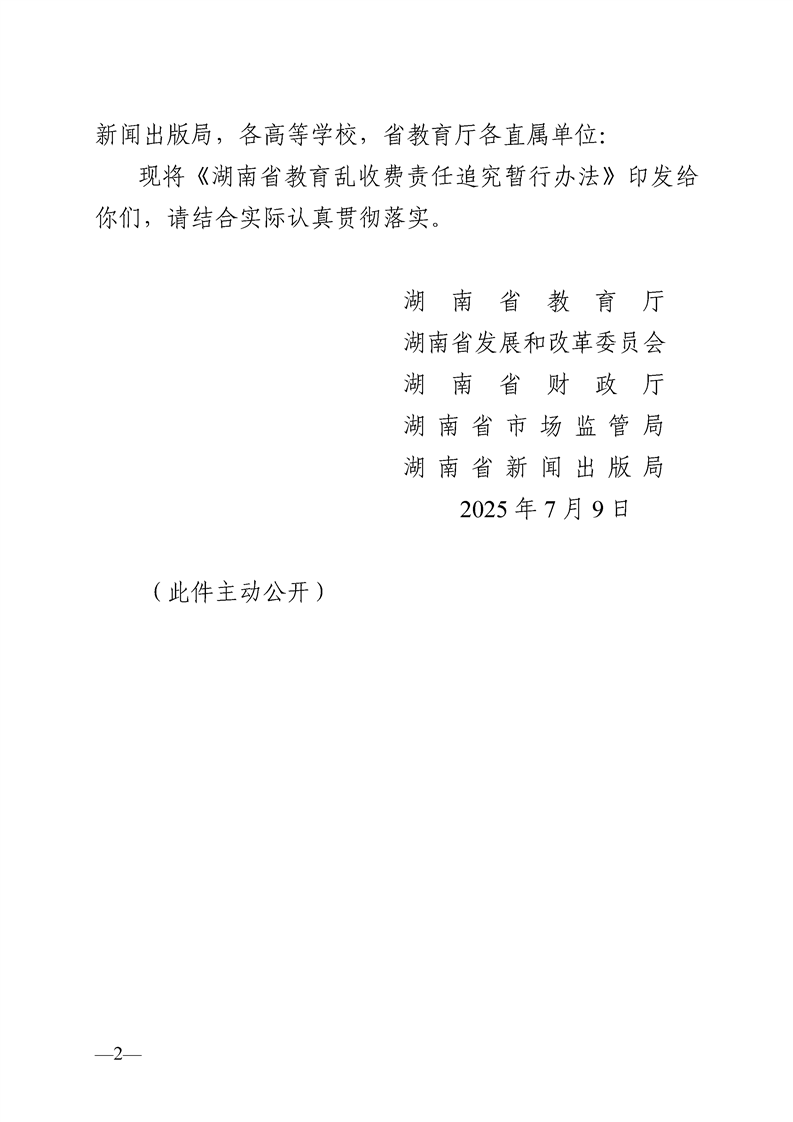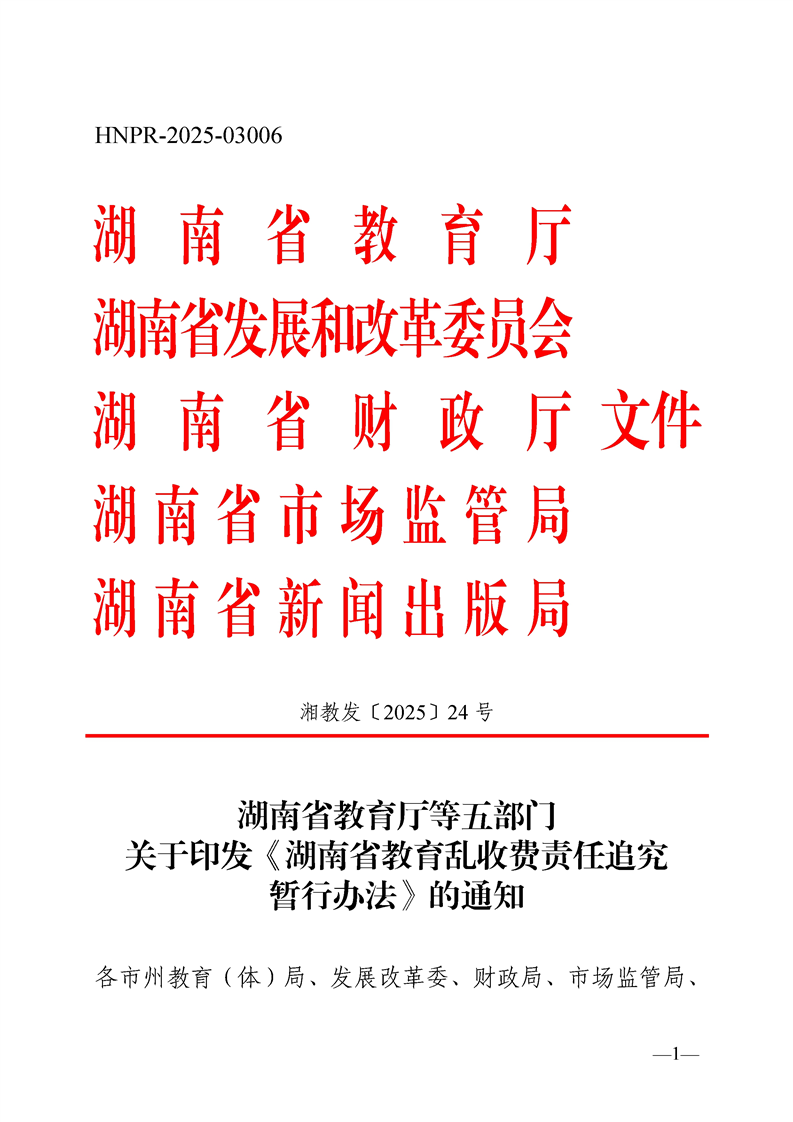 湖南省教育厅等五部门关于印发《湖南省教育乱收费责任追究暂行办法》的通知