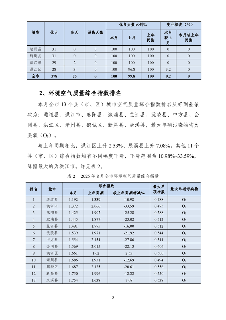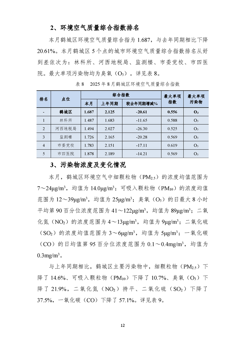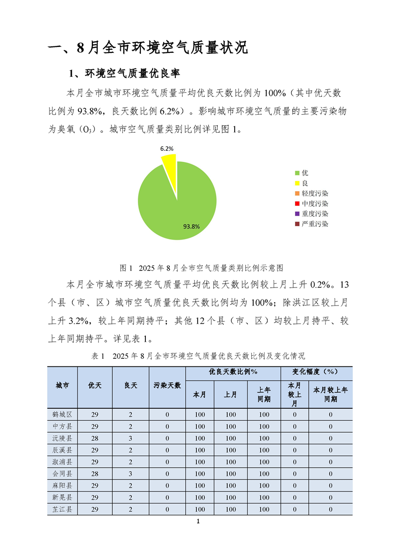 2025年8月环境空气质量月报