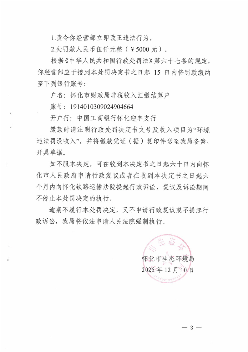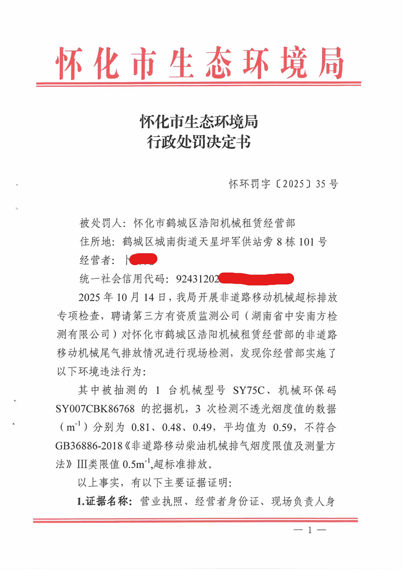 怀化市鹤城区浩阳机械租赁经营部行政处罚决定书