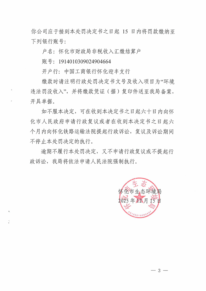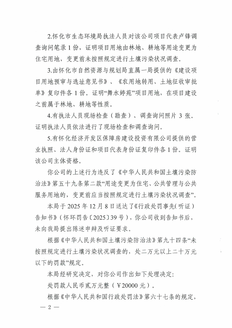 怀化市经济开发区保障房建设投资有限公司行政处罚决定书