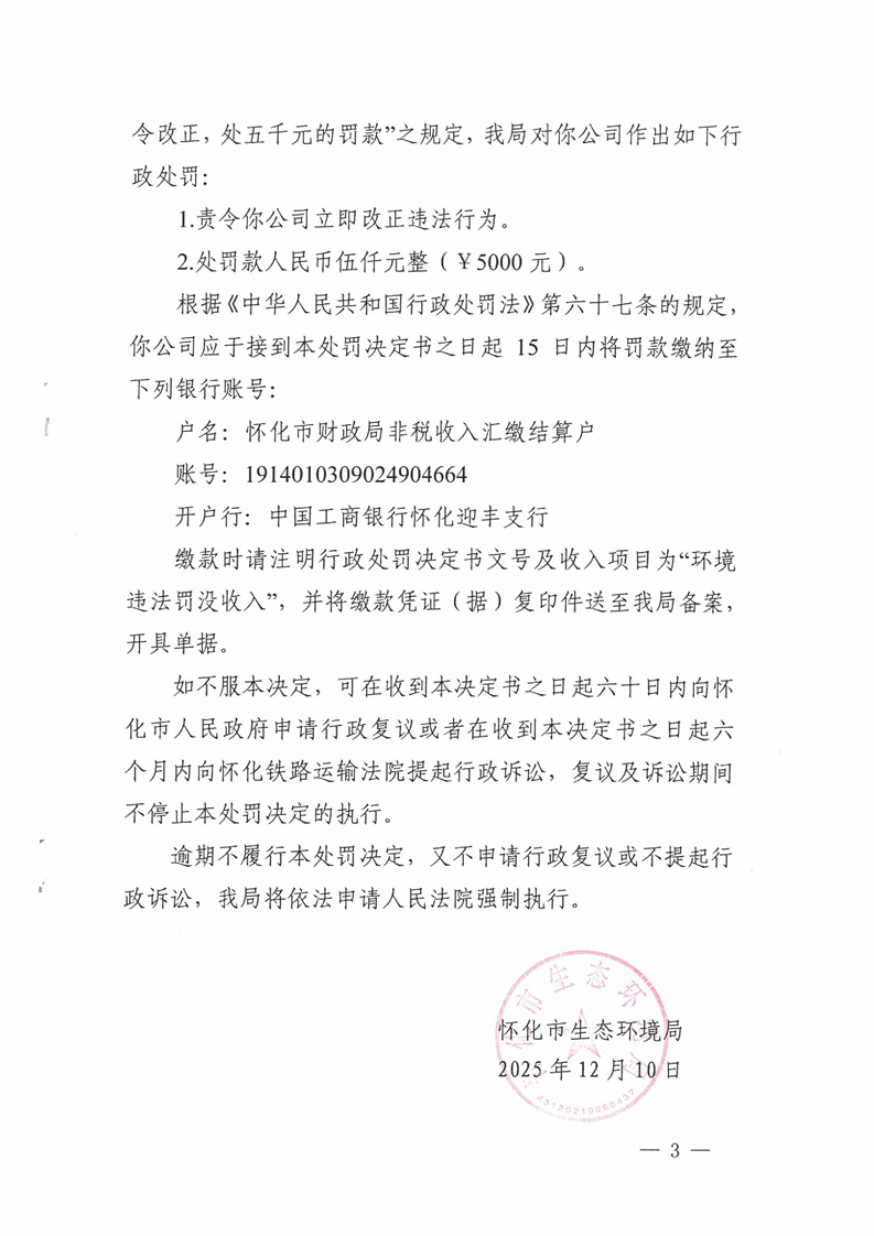 怀化市康鼎鑫物流有限公司行政处罚决定书