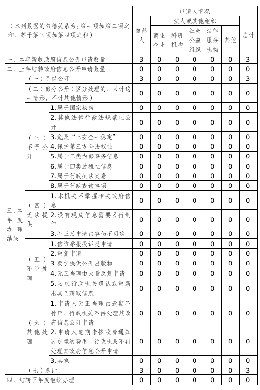 三、收到和处理政府信息公开申请情况