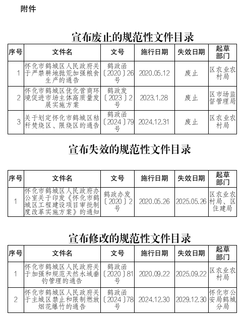 附件:怀化市鹤城区人民政府规范性文件清理结果