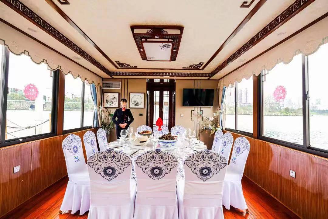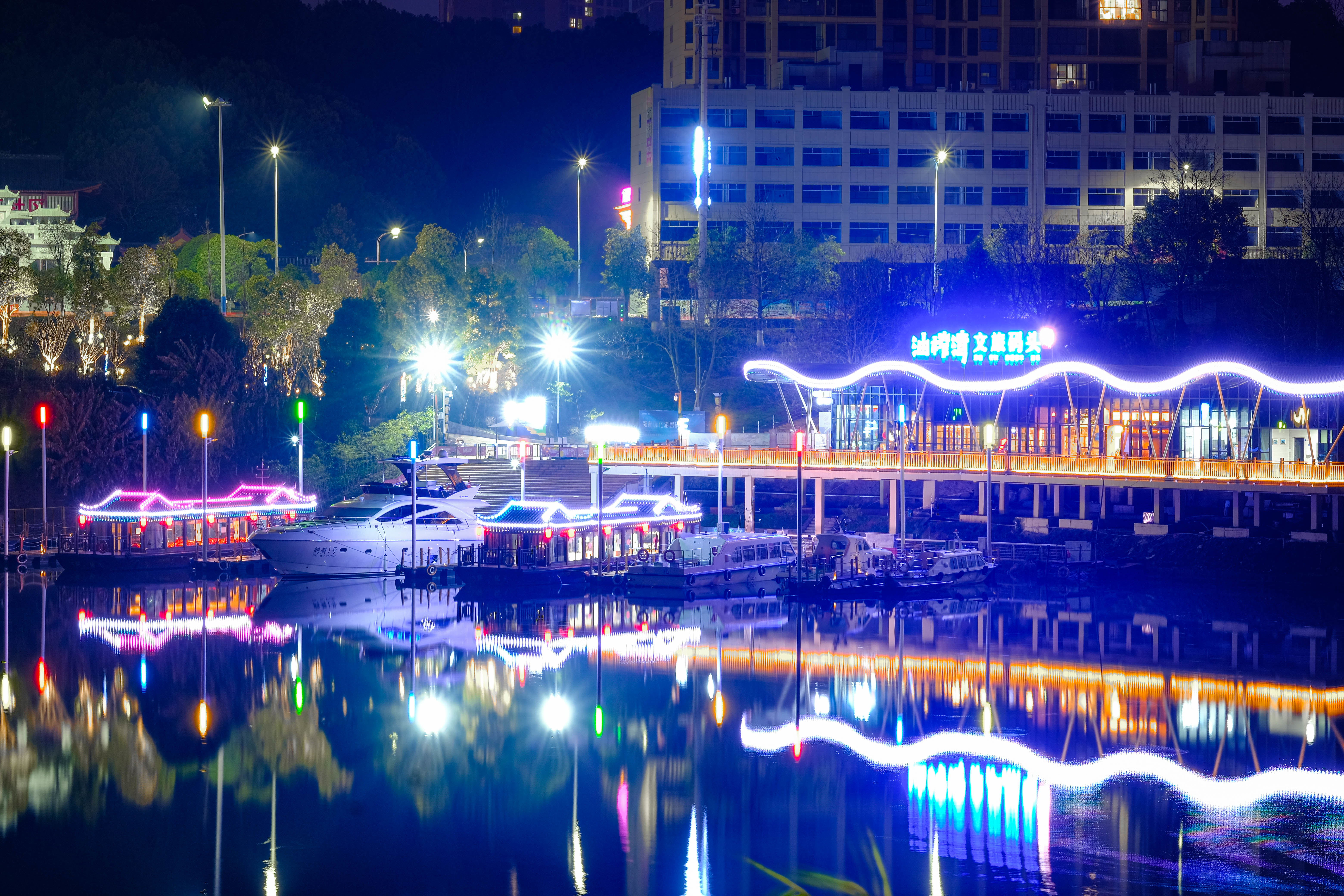 油榨湾文旅码头位于怀化市鹤城区舞水一桥下游西岸,是湖南省新业态示范基地,拥有现代轻奢游艇、中式画舫船等四艘船舶、主题餐厅、游客中心、体闲广场。集游船、餐饮、休闲娱乐、浪漫艺术、夜游等为一体的滨河时尚码头。