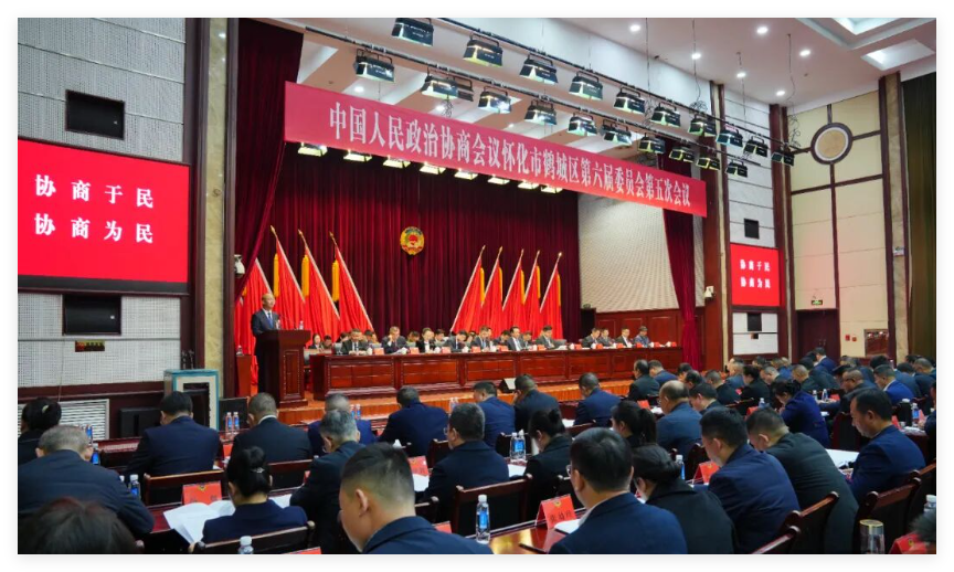 凝心聚力增共识,接续奋斗谱新篇。12月16日上午,中国人民政治协商会议怀化市鹤城区第六届委员会第五次会议在区会议中心一楼开幕。来自全区各条战线、各个界别的政协委员们共聚一堂,肩负全区人民的期盼和重托,积极履行政治协商、民主监督、参政议政职能,为奋力当好推进“五新四城”战略的主力军排头兵,大力建设五省边际区域性中心城市核心区贡献智慧力量。