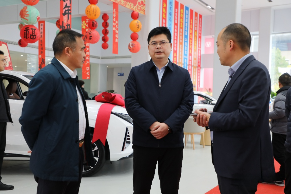 在湖南德众股份有限公司,郑明明与公司董事长段坤良座谈交流,认真听取企业主营业务拓展、市场销售、节后复工复产等情况介绍,感谢他一直以来对鹤城经济社会发展作出的贡献。郑明明鼓励企业坚定信心决心,把握新能源汽车产业发展机遇,拓展销售渠道,强化技术支撑,引进专业人才,提升服务质量,抢订单、拓市场、促发展,为全区一季度“开门红”贡献更大力量。