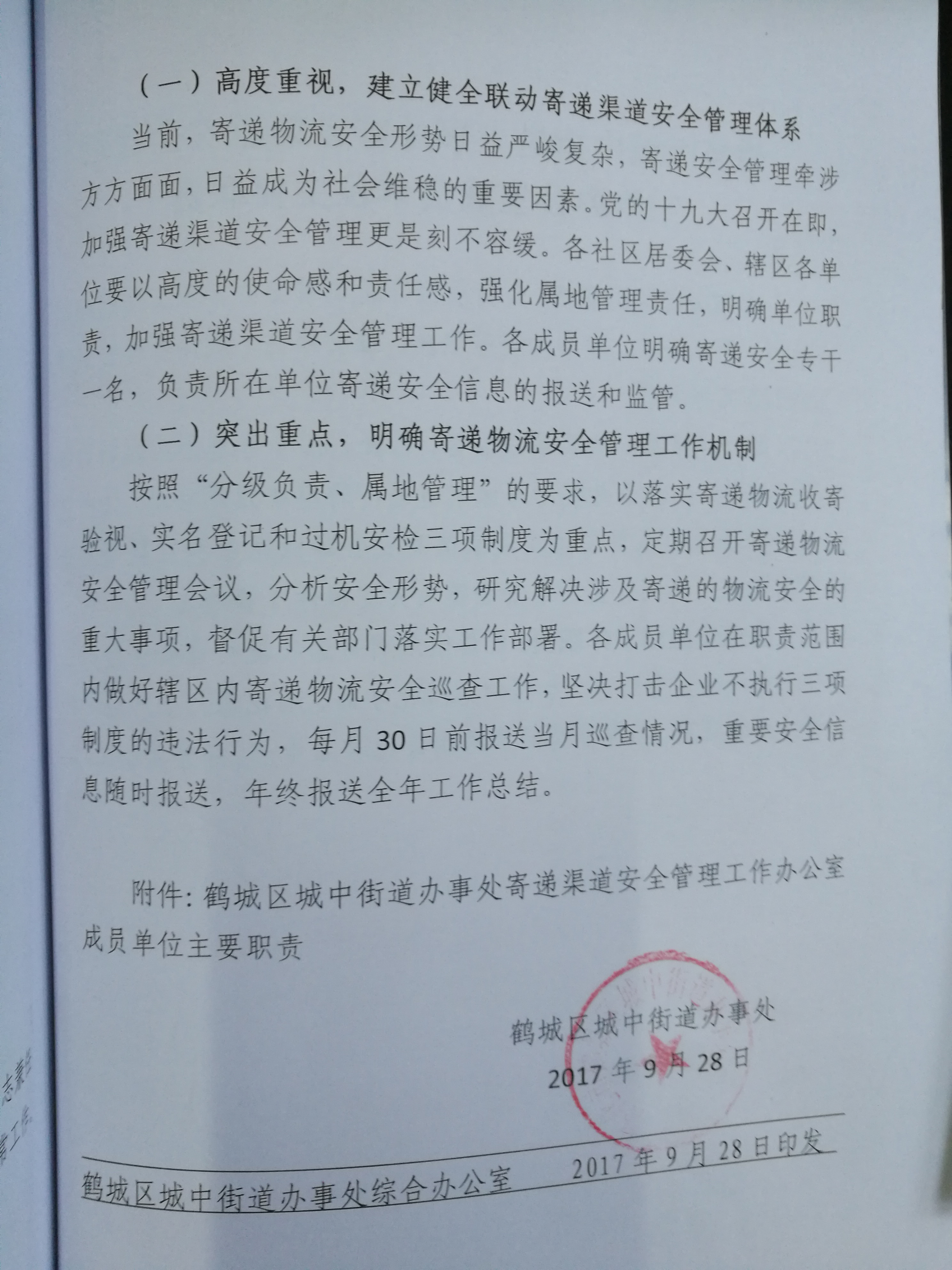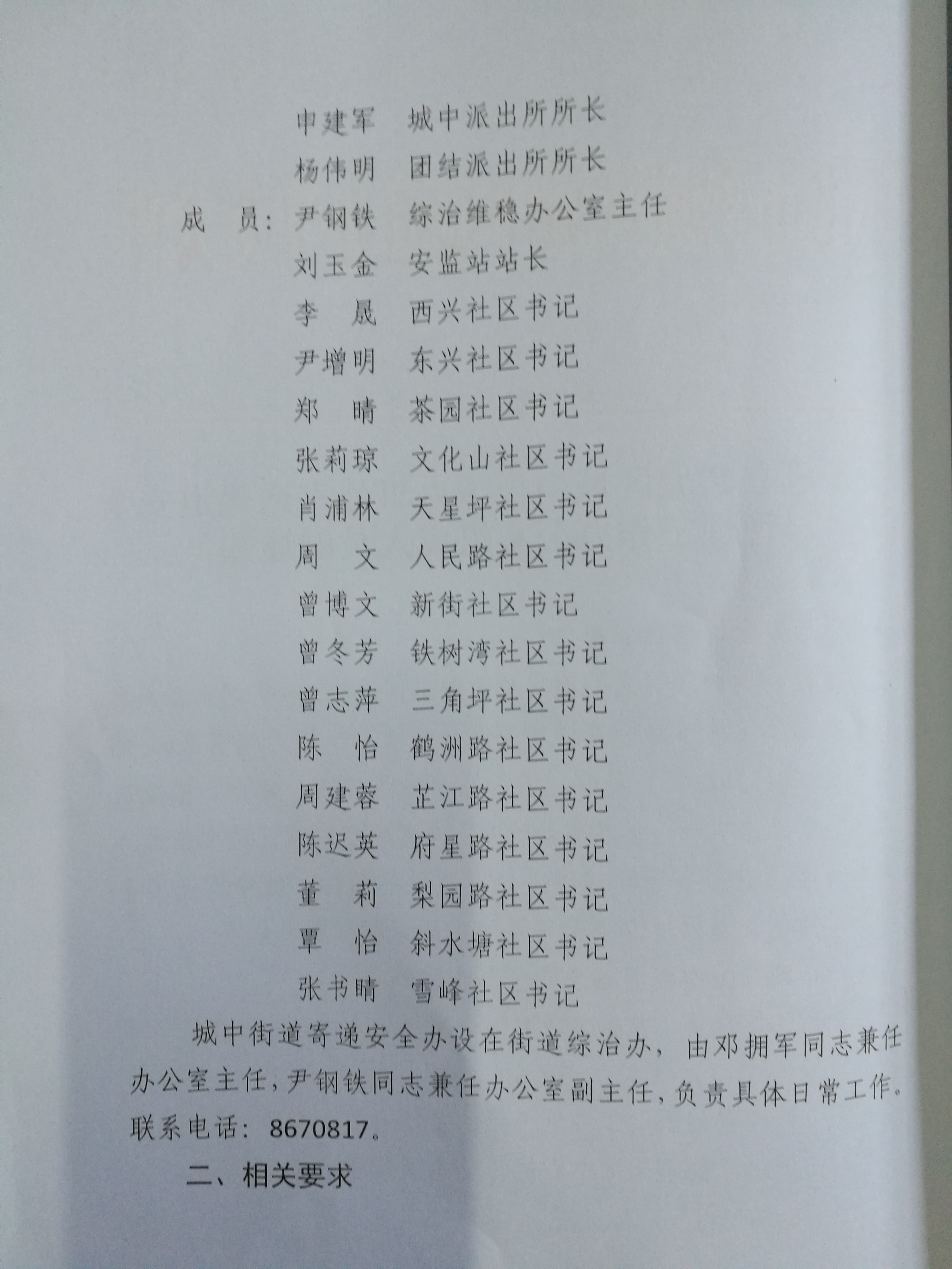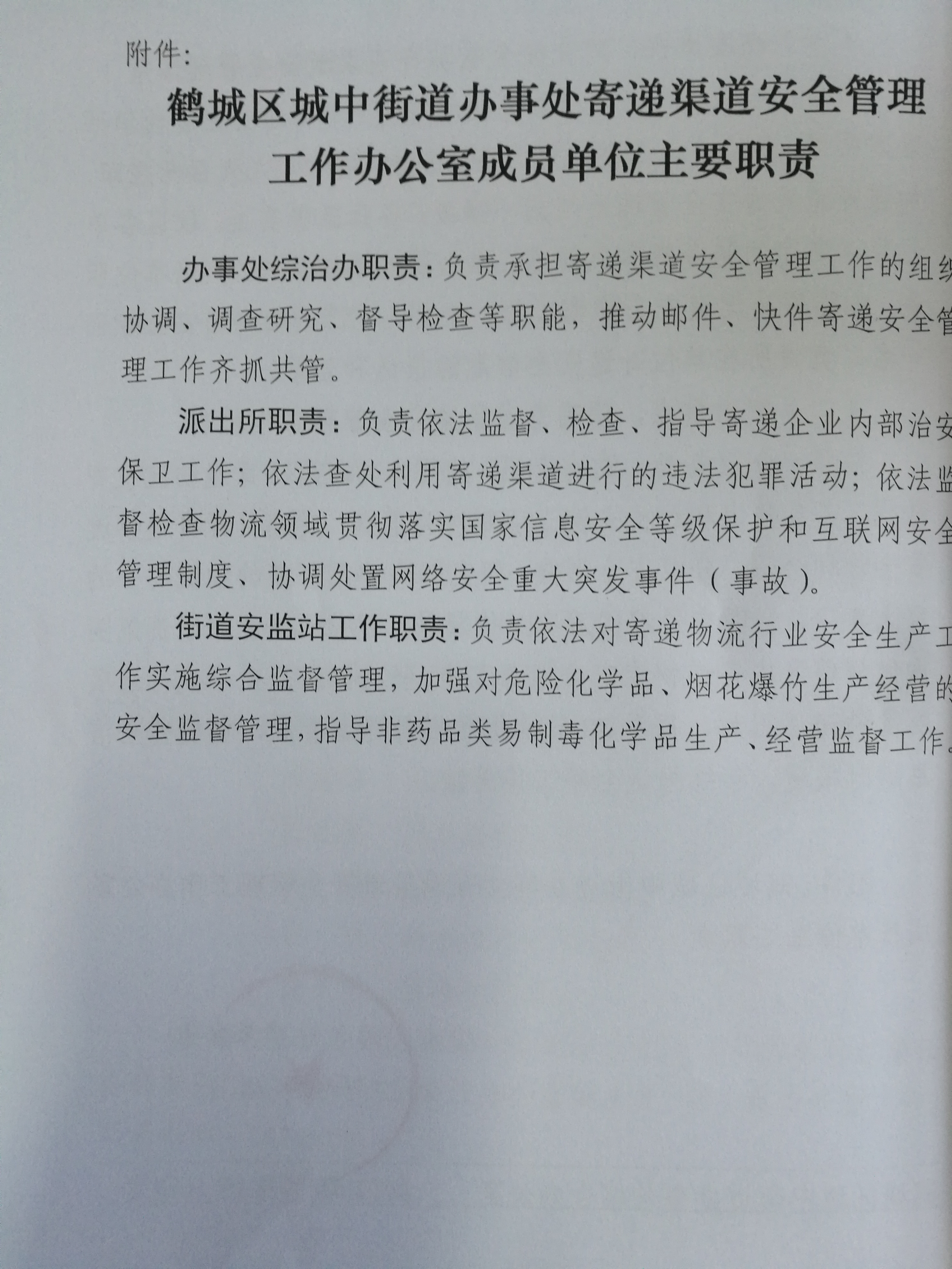 关于成立鹤城区城中街道办事处寄递渠道安全管理工作办公室组成人员的通知