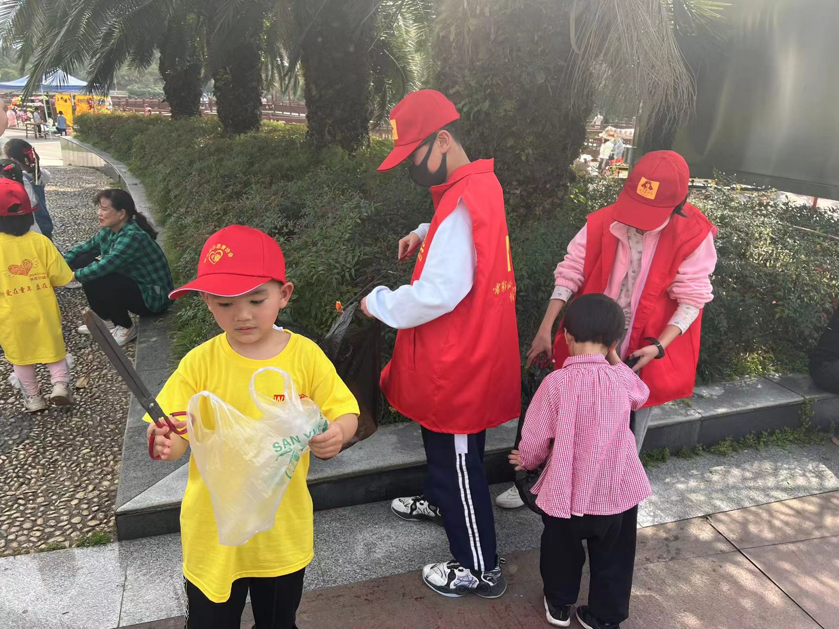 活动中雷锋青少年和公益小天使们手拿垃圾袋和钳子,沿着五溪文化广场环湖道路拾捡草坪和小道上的废弃物、纸屑、果皮、食品袋等各类垃圾,发扬一不怕脏二不怕累的工作精神,以实际行动践行志愿服务承诺,勇做鹤城新时代文明实践风尚的践诺人。