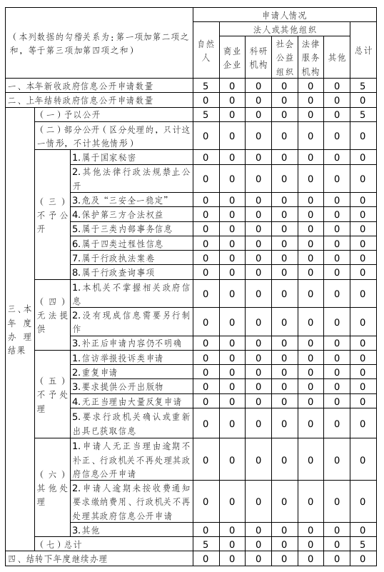 三、收到和处理政府信息公开申请情况