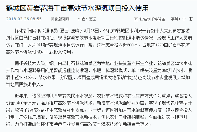 鹤城区黄岩花海千亩高效节水灌溉项目投入使用