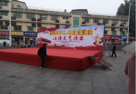 图一、文艺演出展台布置中(12月3日市委佳慧广场)