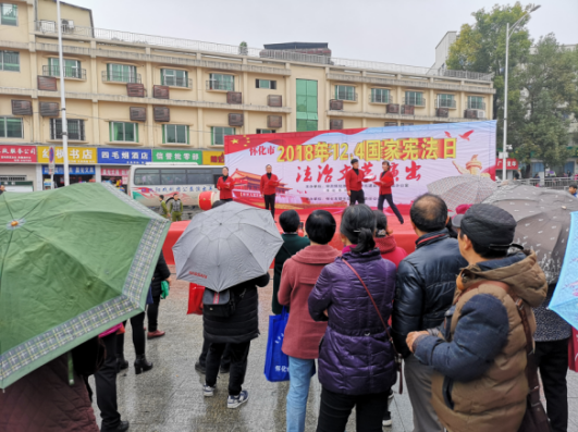 活动现场,多家单位悬挂了横幅、设置了相关法律知识展板、宣传咨询台,同时在市委佳慧广场进行了“怀化市2018年12.4国家宪法日法治文艺演出”。各单位组织的工作人员结合本职工作,发挥各自的专业优势,为群众宣传法律知识。活动当日天气虽然很冷,又下着小雨,但人来人往的热闹景象将现场的温度顿时提高,前来我局设置的咨询台领取“餐饮油烟污染防治宣传资料”、“广场噪声污染防治宣传手册”与环保袋的群众络绎不绝,我局工作人员并针对群众关心的环境污染等方面的问题提供咨询,鼓励群众积极举报环境污染行为,引导群众运用法律手段维权、理性维权。怀化市政法委书记蒲学联、怀化市人大常委会副主任张干太、怀化市人民政府副市长胡长春等领导也出席了12.4国家宪法日宣传活动,对我局的法制宣传工作作出了肯定,并提出了要加强环保法律法规宣传、重视并及时回应群众的述求等方面的要求。