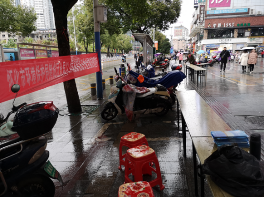 图二、我局宣传咨询台紧张布置中(12月3日市委佳慧广场)