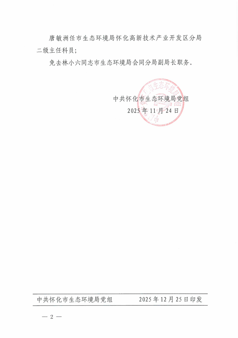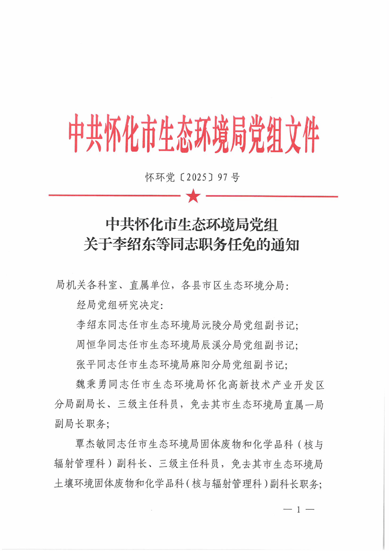 中共怀化市生态环境局党组关于李绍东等同志职务任免的通知