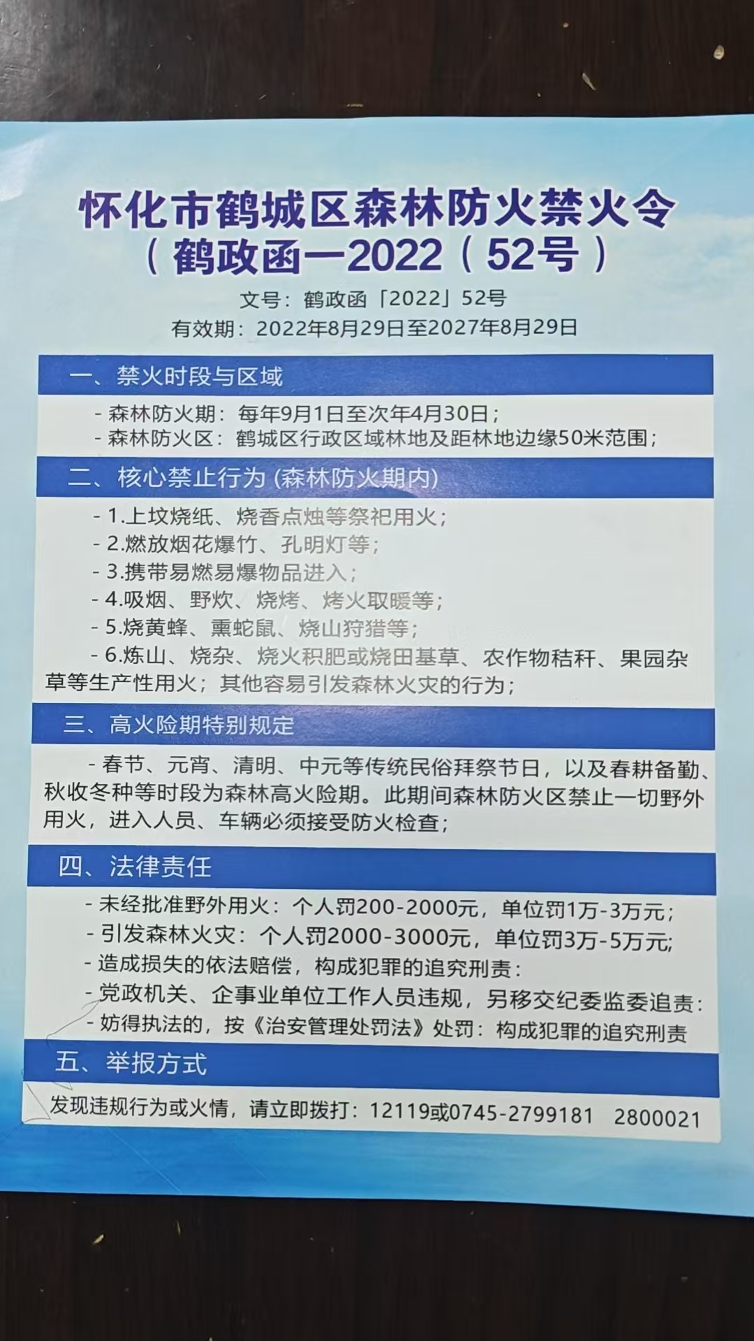 怀化市鹤城区森林防火禁火令