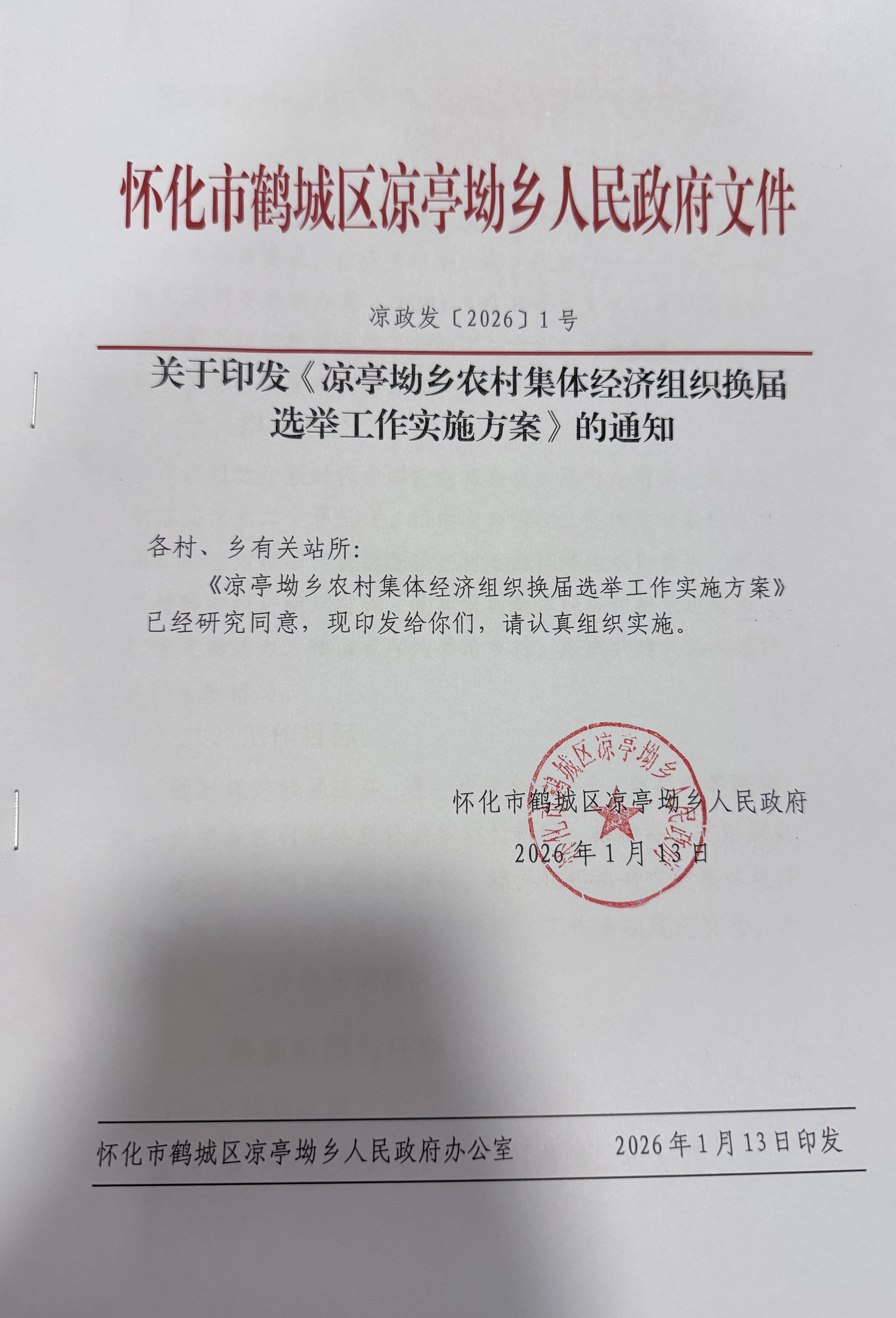 关于印发《凉亭坳乡农村集体经济组织换届选举工作实施方案》的通知