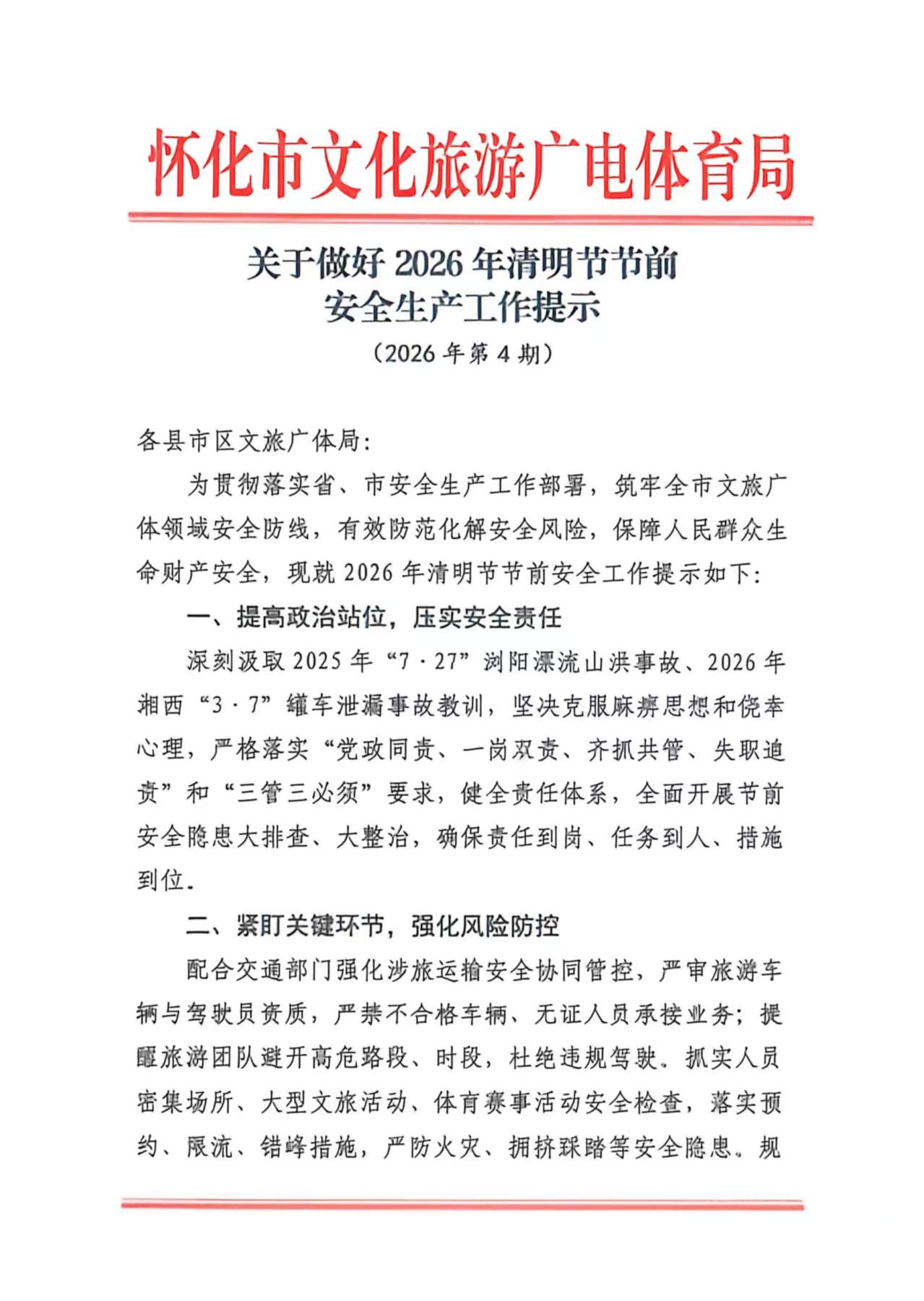 关于做好2026年清明节节前安全生产工作提示