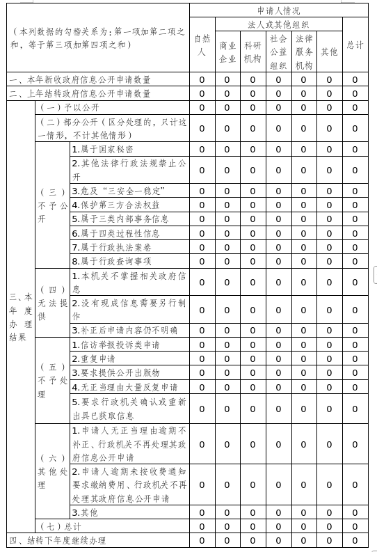 三、收到和处理政府信息公开申请情况