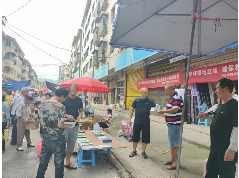 为了进一步加强耕地保护制度,严格落实粮食生产安全,8月3日,鹤城区农业农村局趁黄金坳镇赶集日之便,前往开展耕地保护宣传。